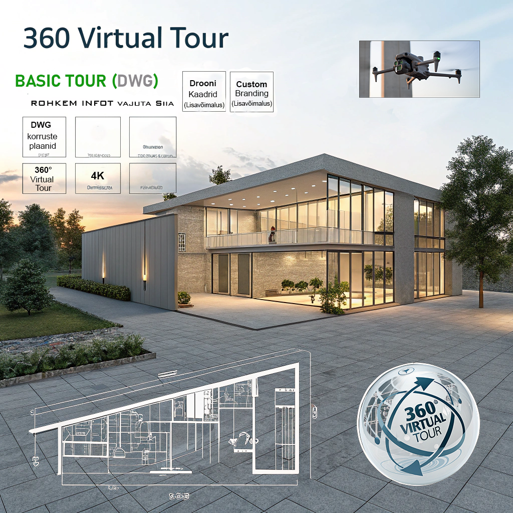 🔵🟢 PREMIUM TOUR (DWG Standard) – DWG-formaadis plaanid + Teie ettevõtte logoga ja brandinguga virtuaaltuur