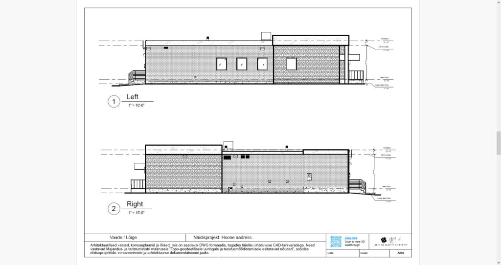 Väljundfailid: DWG, PDF hoone vaated, plaanid, lõiked + 3D mudel